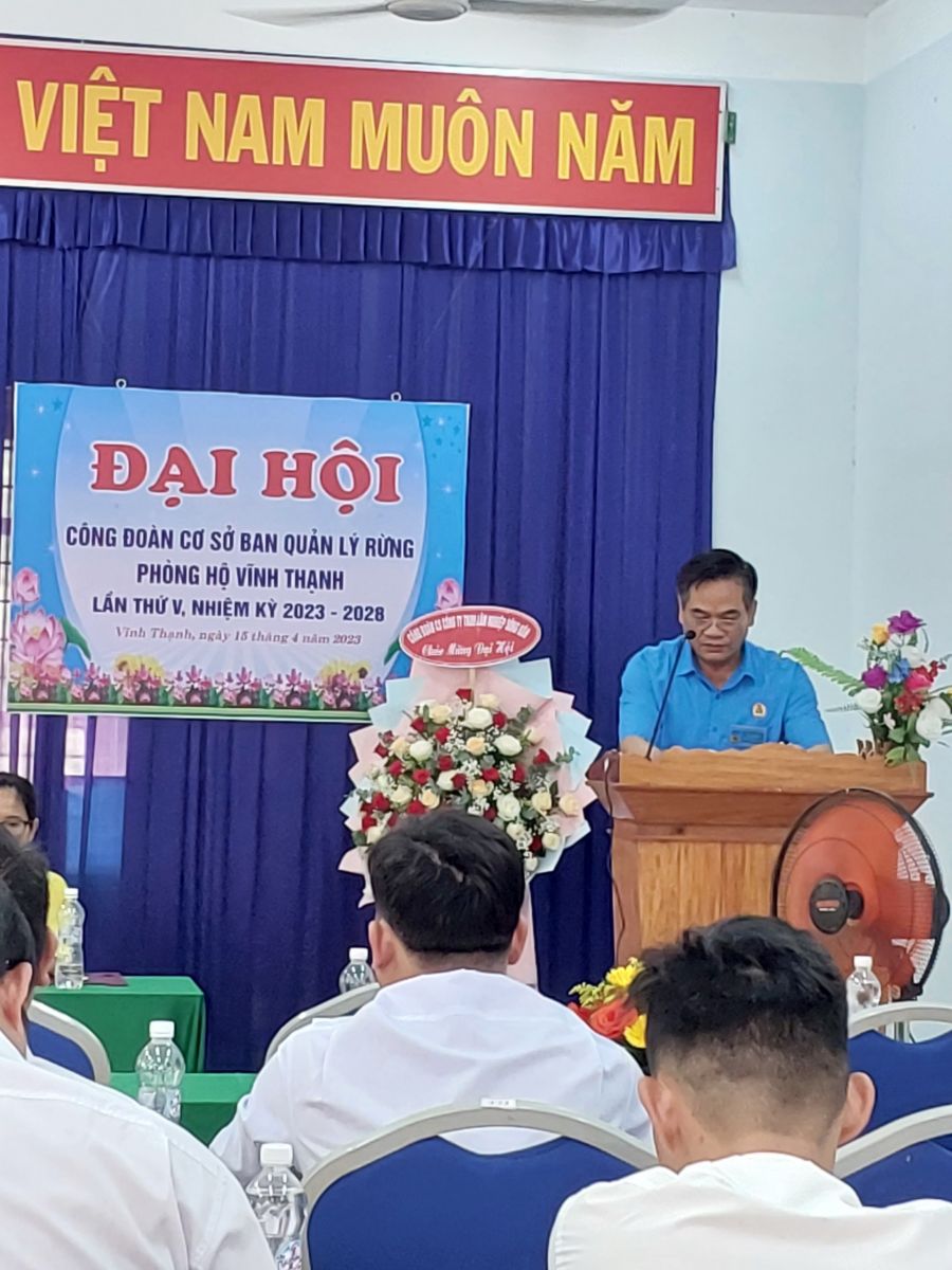 Sáng ngày 15/4/2023, Công đoàn cơ sở Ban Quản lý rừng phòng hộ tổ chức Đại hội Công đoàn lần thứ V, nhiệm kỳ 2023-2028. Về dự và chúc mừng Đại hội có đồng chí Nguyễn Văn Xuối, Ủy viên Ban chấp hành Liên đoàn Lao động huyện Vĩnh Thạnh, phía khách mời đơn vị bạn có đồng chí Nguyễn Ngọc Dân Phó Chủ tịch Công đoàn Công ty TNHH Lâm nghiệp Sông Kôn và cùng 44 đoàn viên CĐCS Ban Quản lý rừng phòng hộ.
